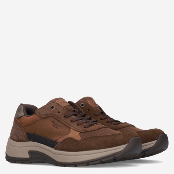 Deze bruine Samira herensneaker van Rieker is gemaakt van leer in combinatie met textiel en synthetische materialen. De sneaker is voorzien van zowel een rits- als vetersluiting voor een gemakkelijke instap.