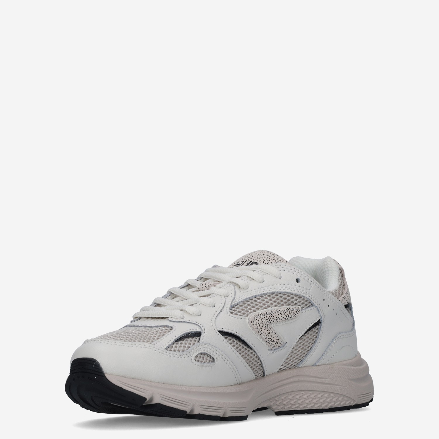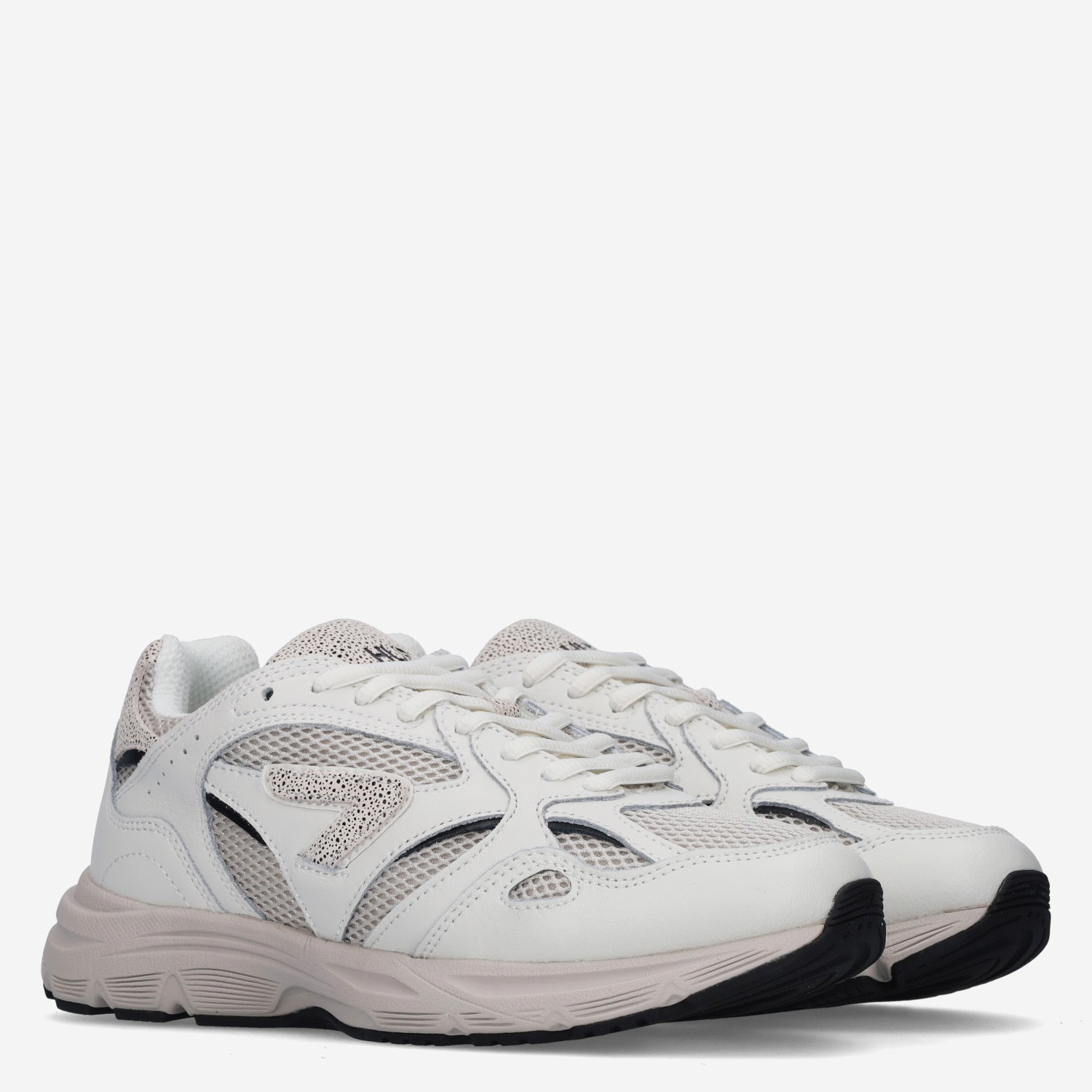 Deze offwhite, grijze Shift L09 damessneaker van HUB is gemaakt van leer in combinatie met textiel en synthetische materialen.