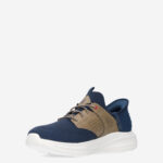 Deze blauw met bruine Slade Ocon herensneaker van Skechers is gemaakt van imitatieleer in combinatie met mesh. De Slip-In is voorzien van een lichtgewicht zool en heeft een gemakkelijke instap.