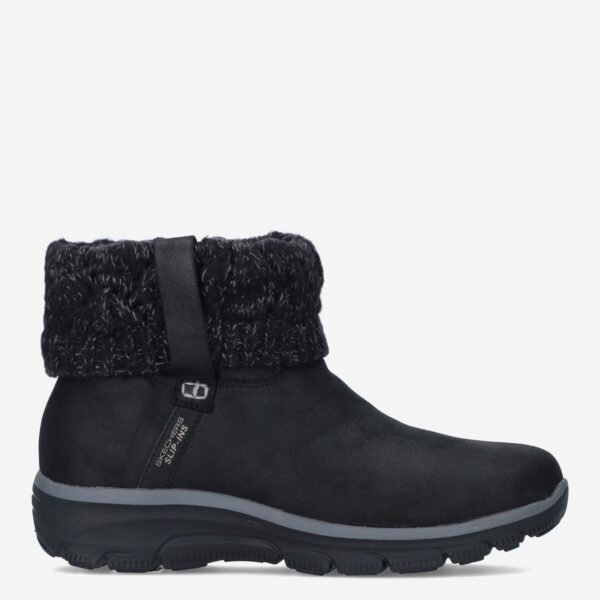 Deze zwarte Slip-Ins Relaxed Fit Boot damesschoen van Skechers is gemaakt van imitatieleer in combinatie met textiel en synthetische materialen. De boot is voorzien van een gemakkelijke instap en heeft een gebreid bovenwerk en zachte binnenvoering.