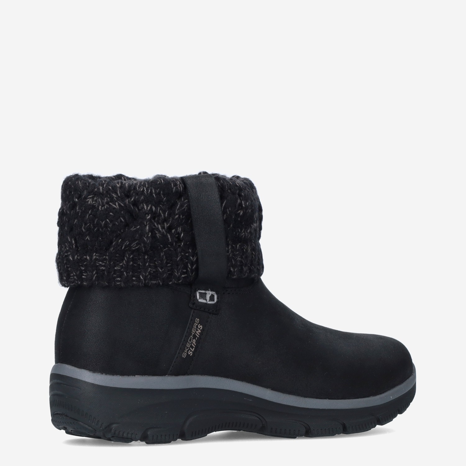 Deze zwarte Slip-Ins Relaxed Fit Boot damesschoen van Skechers is gemaakt van imitatieleer in combinatie met textiel en synthetische materialen. De boot is voorzien van een gemakkelijke instap en heeft een gebreid bovenwerk en zachte binnenvoering.