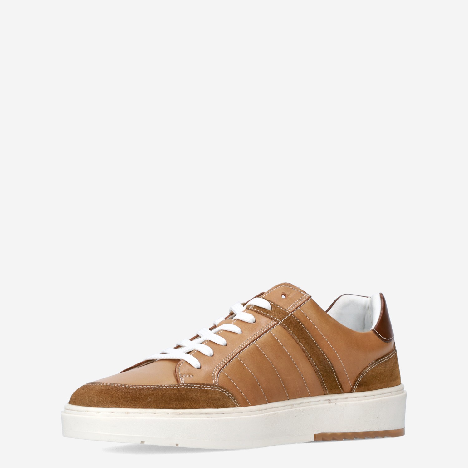 Deze bruine herenschoen van Bull Boxer is gemaakt van een combinatie van verschillende leersoorten. De sneaker heeft een sportieve uitstraling.