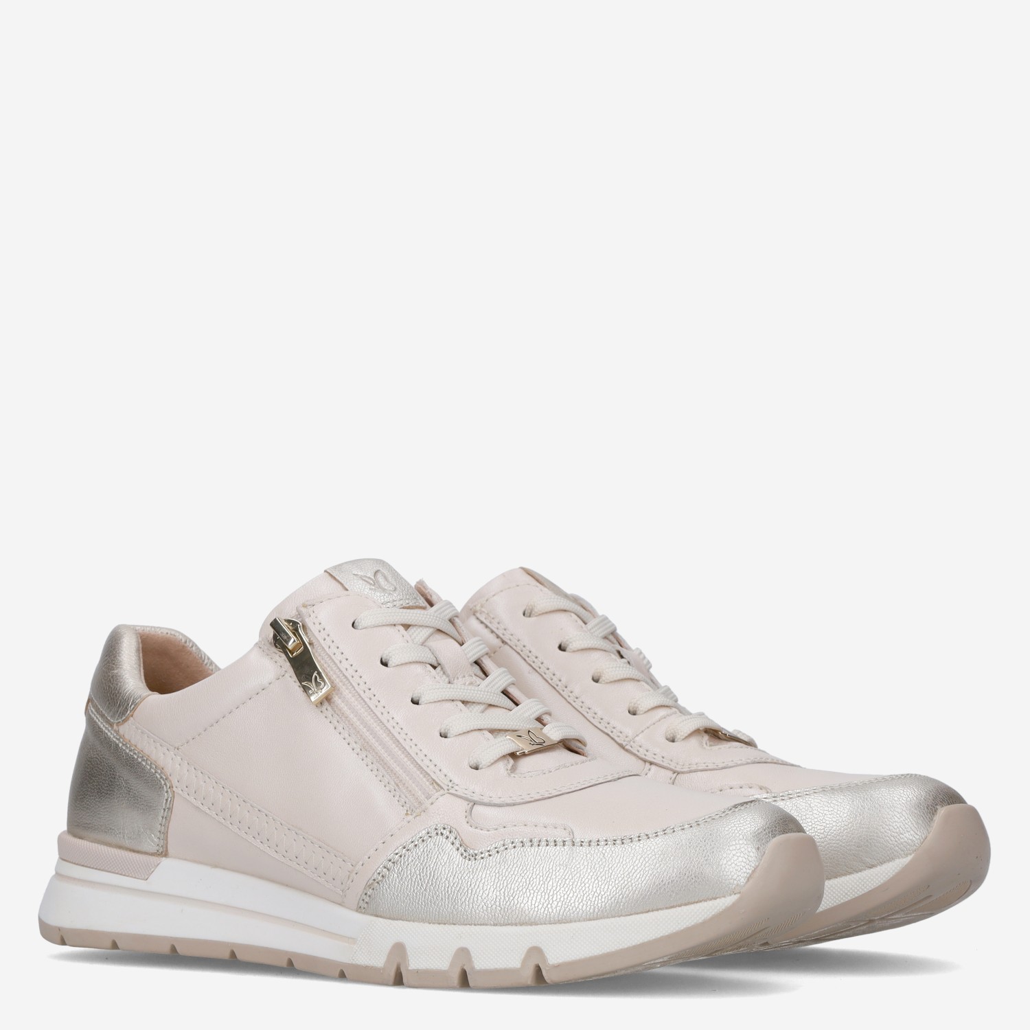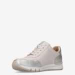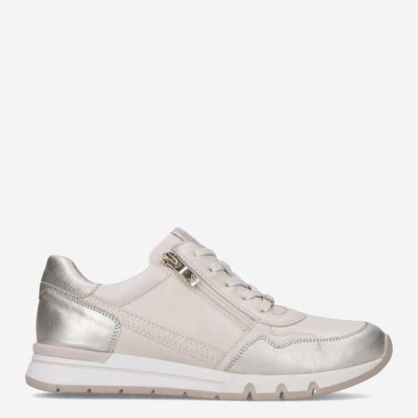 Deze beige damessneaker van Caprice is gemaakt van verschillende leersoorten. De sneaker is voorzien van zowel een rits als vetersluiting voor een gemakkelijke instap.
