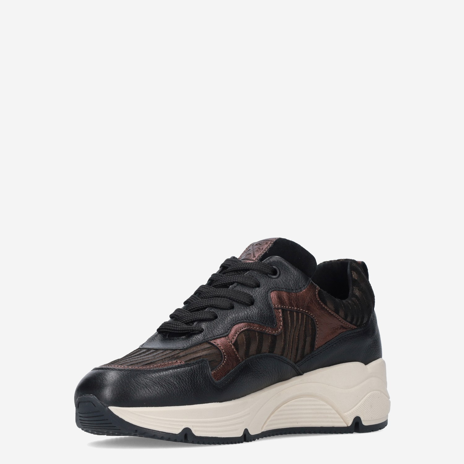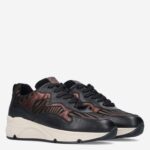 Deze zwart met bruine Sneaker damesschoen van Bridge is gemaakt van imitatieleer in combinatie met synthetische materialen. De sneaker heeft metallic accenten en een zebra design.