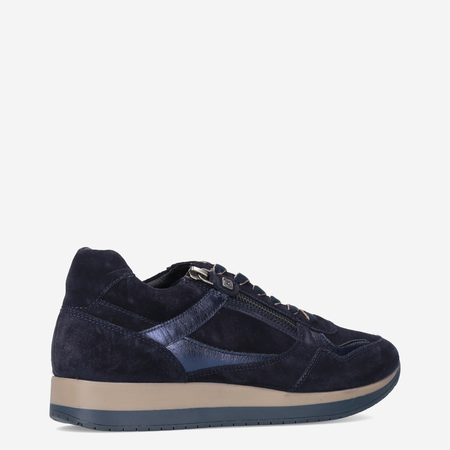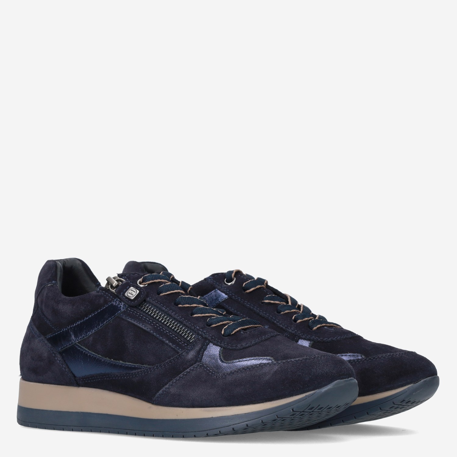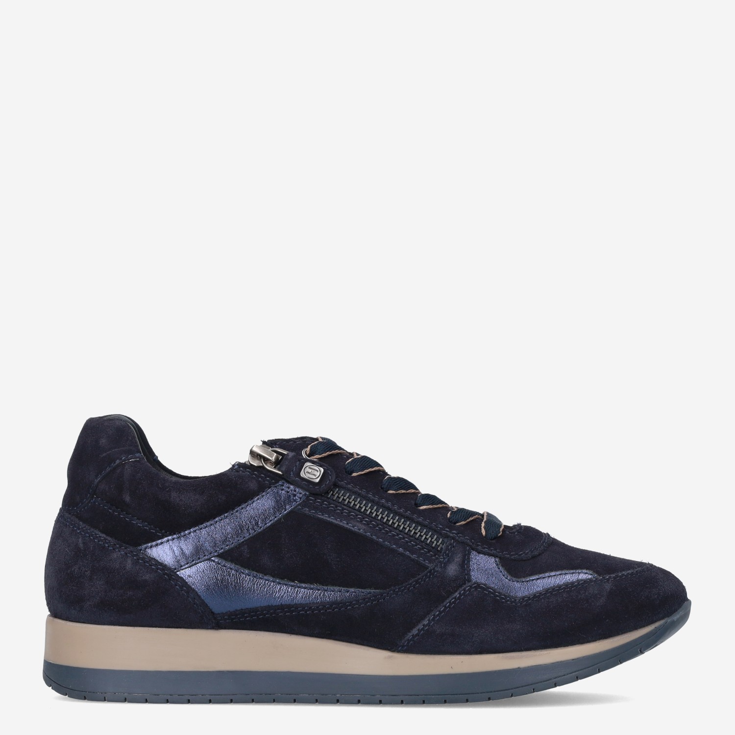 Deze blauwe metallic Sneaker H Combi damessneaker van Helioform is gemaakt van leer in combinatie met synthetische materialen. De sneaker is voorzien van zowel een rits- als vetersluiting voor een gemakkelijke instap.
