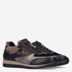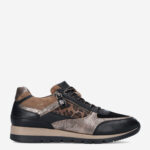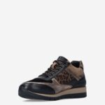 Deze bruin met zwarte Sneaker H Leopard damessneaker van Helioform is gemaakt van leer in combinatie met synthetische materialen. De sneaker is voorzien van zowel een rits- als vetersluiting voor een gemakkelijke instap en heeft een panterprint design.