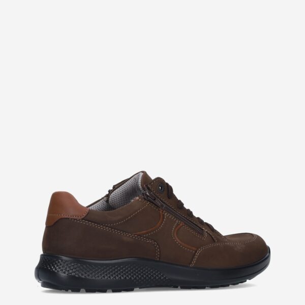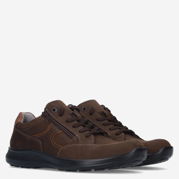 Deze donker bruine herenschoen van Jomos is gemaakt van leer in combinatie met synthetische materialen. De schoen is voorzien van zowel een rits- als vetersluiting voor een gemakkelijke in- en uitstap en heeft schoenwijdte K.