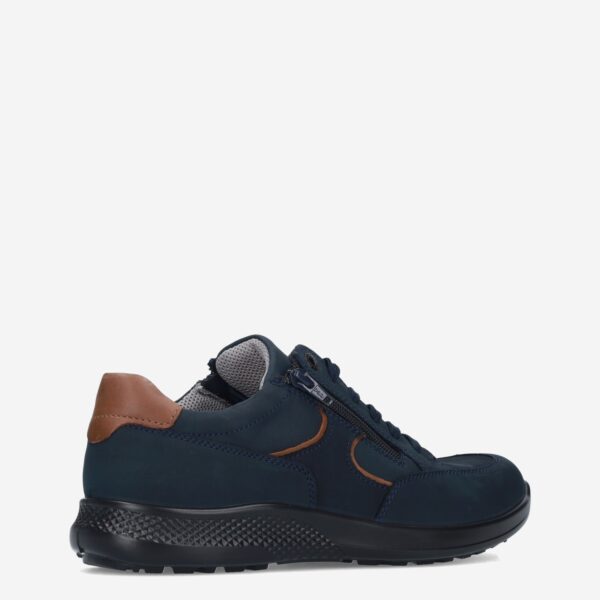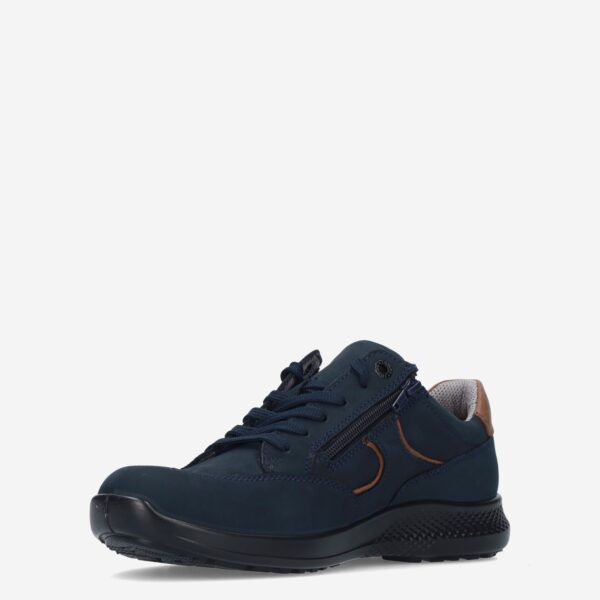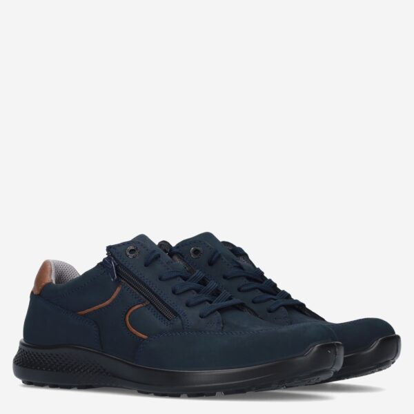 Deze donker blauwe herenschoen van Jomos is gemaakt van leer in combinatie met synthetische materialen. De schoen is voorzien van zowel een rits- als vetersluiting voor een gemakkelijke in- en uitstap en heeft schoenwijdte K.