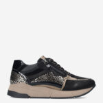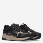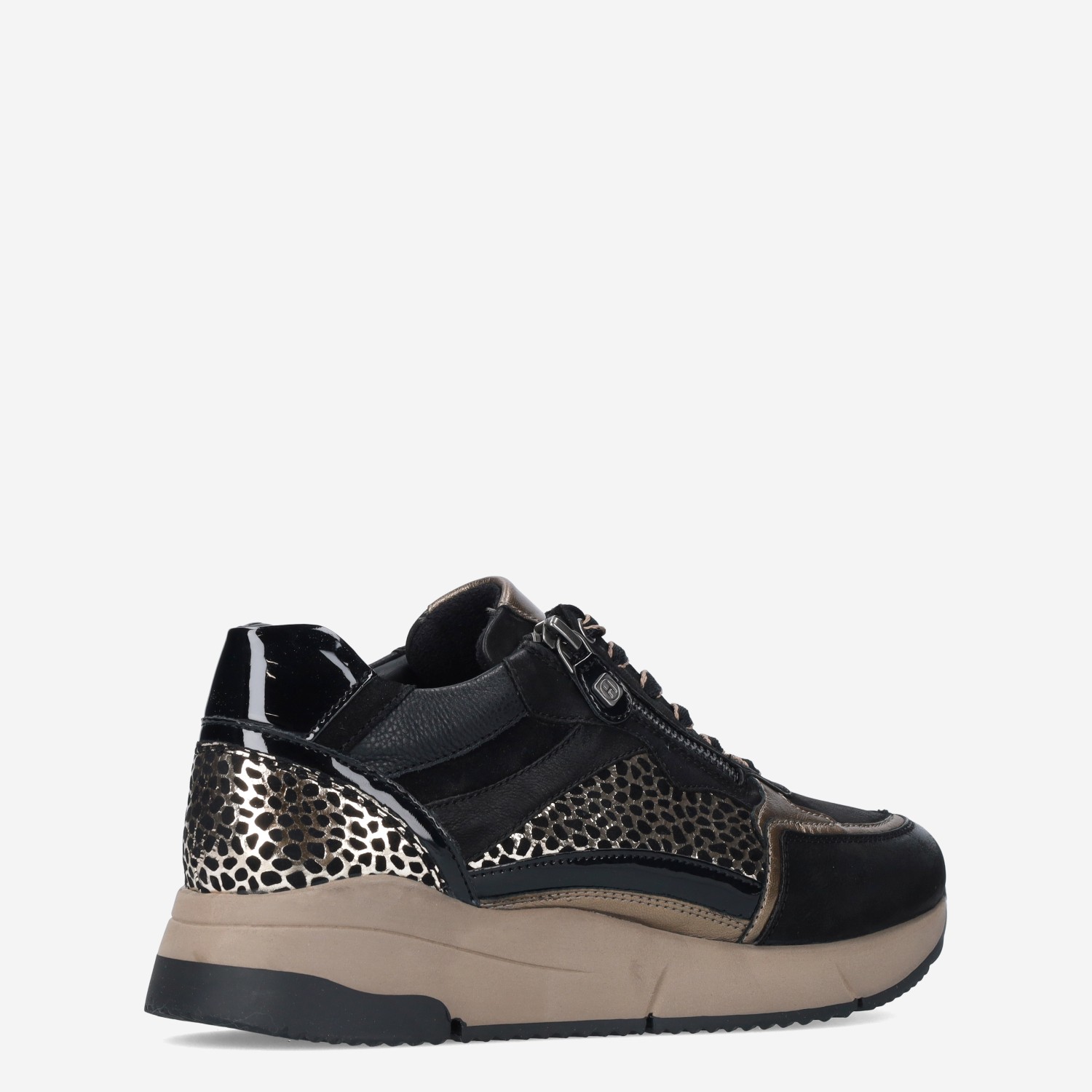 Deze zwart met gouden Sneaker K Combi damessneaker van Helioform is gemaakt van leer in combinatie met synthetische materialen. De sneaker is voorzien van zowel een rits- als vetersluiting voor een gemakkelijke instap.
