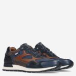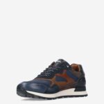 Deze blauw met bruine Tiago herenschoen van Australian is gemaakt van leer in combinatie met synthetische materialen. De sneaker heeft een nette uitstraling en is voorzien van verschillende overlays.