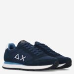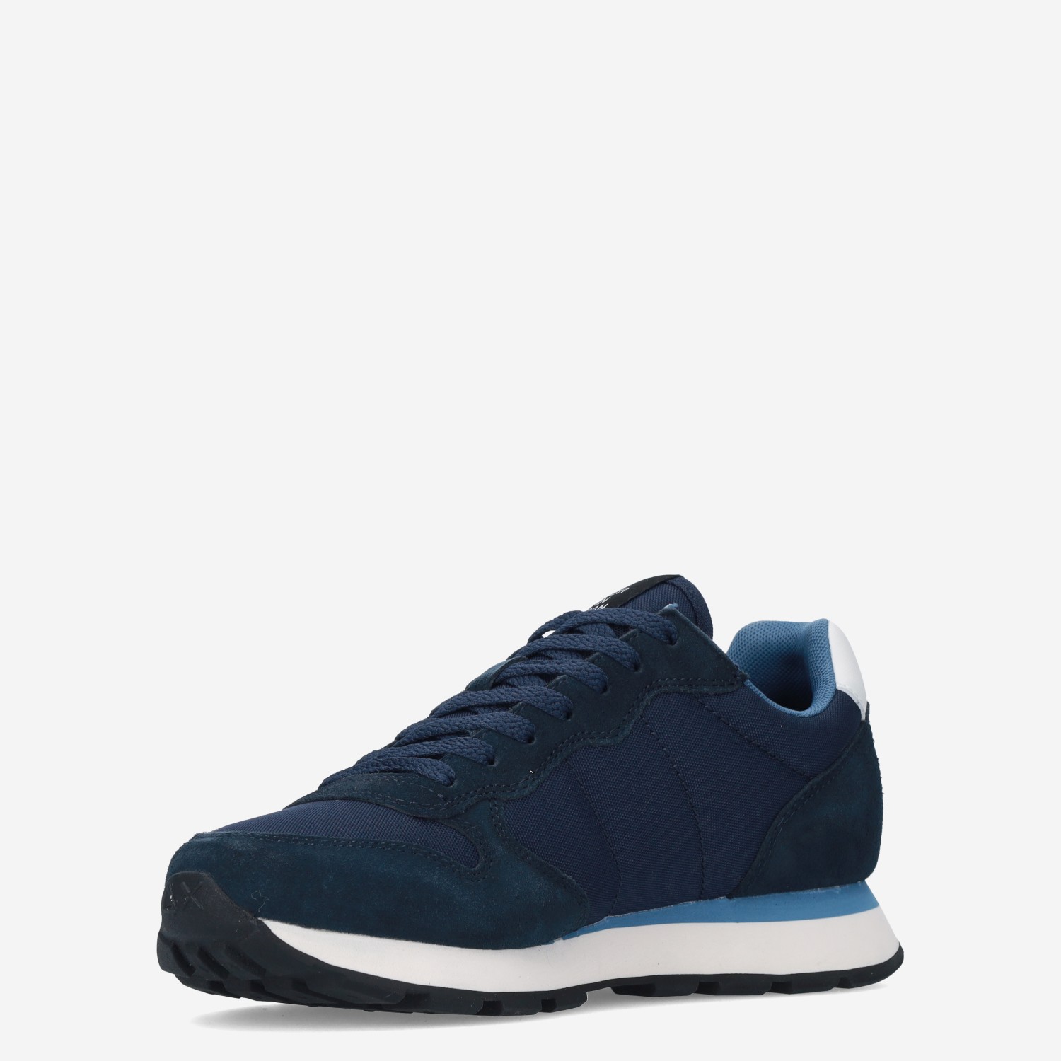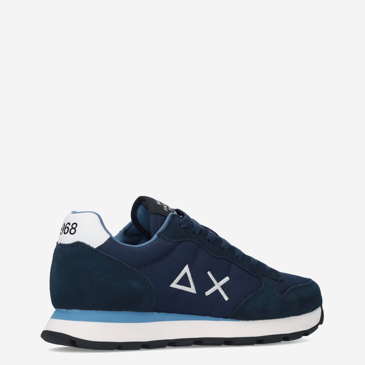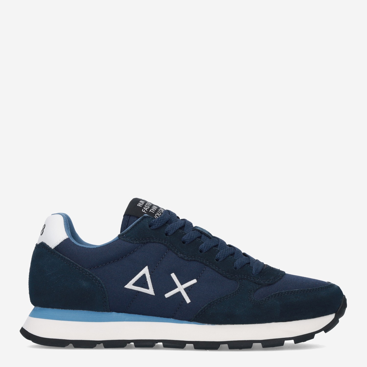 Deze donker blauwe Tom Solid herensneaker van Sun68 is gemaakt van textiel in combinatie met leer.