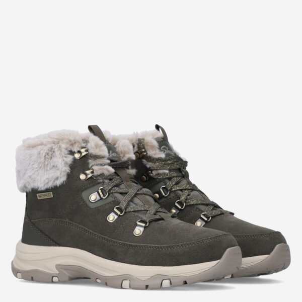 Deze groene Trego Snow damesboot van Skechers is gemaakt van leer in combinatie met textiel en synthetische materialen. De stevige boot is voorzien van een vetersluiting, heeft een zachte voering en waterproof membraan.