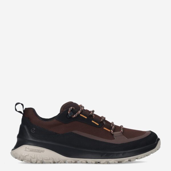 Deze donker bruin met zwarte Ult-Trn M herensneaker van ECCO is gemaakt van leer in combinatie met technisch textiel. De sneaker is voorzien van een waterproof membraan en geschikt om mee te wandelen.