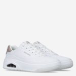 Deze witte Uno Court damessneaker van Skechers is gemaakt van imitatieleer in combinatie met textiel. De sneaker is voorzien van een Skechers’ Air-Cooled memoryfoam voetbed. Dit zorgt voor optimale demping en comfort.