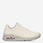 Deze beige Uno Safari Time damessneaker van Skechers is gemaakt van imitatieleer in combinatie met textiel en synthetische materialen. De sneaker is voorzien van een Air-Cooled Memory Foam binnenzool en heeft een luchtkussen in de loopzool die zorgen voor extra comfort.