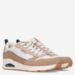 Deze wit met bruine Uno Stacre 2.0 herensneaker van Skechers is gemaakt van suรจde in combinatie met synthetische materialen. De sneaker is voorzien van een Skechers Air-Cooled Memory Foamยฎ binnenzool en een Skech-Airยฎ tussenzool met zichtbaar luchtkussen.
