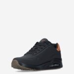Deze zwarte Uno Suited On Air herensneaker van Skechers is gemaakt van imitatieleer in combinatie met suรจde. De sneaker is voorzien van een stevige, lichtgewicht zool met luchtkussen voor extra comfort.