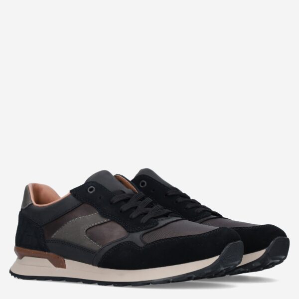 Deze zwarte multicoloured Usedcalf herensneaker van Rieker is gemaakt van leer in combinatie met textiel en synthetische materialen. De sneaker is voorzien van verschillende leren overlays.