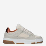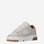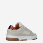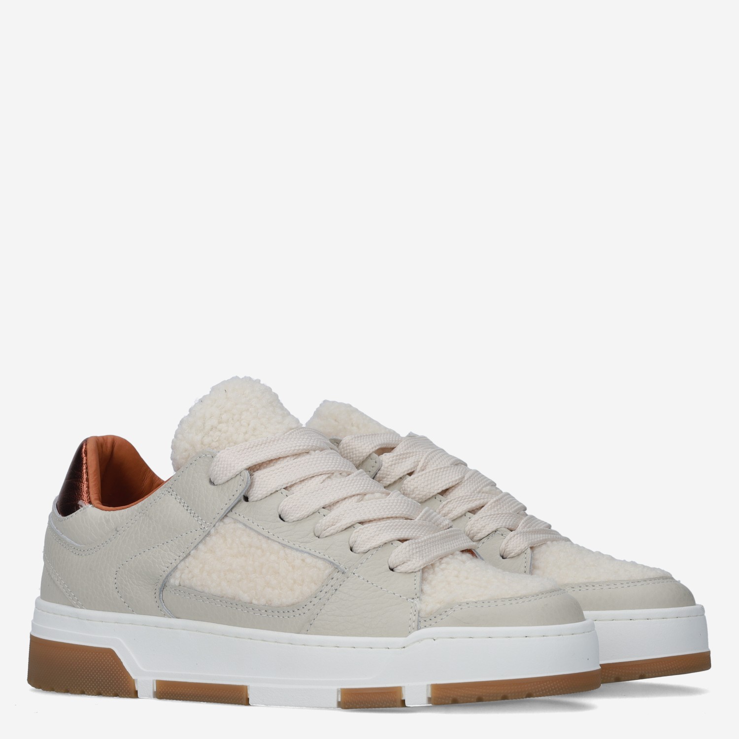 Deze offwhite, grijze Whitby Teddy damessneaker van DWRS is gemaakt van verschillende leersoorten in combinatie met textiel (teddystof) en synthetische materialen.