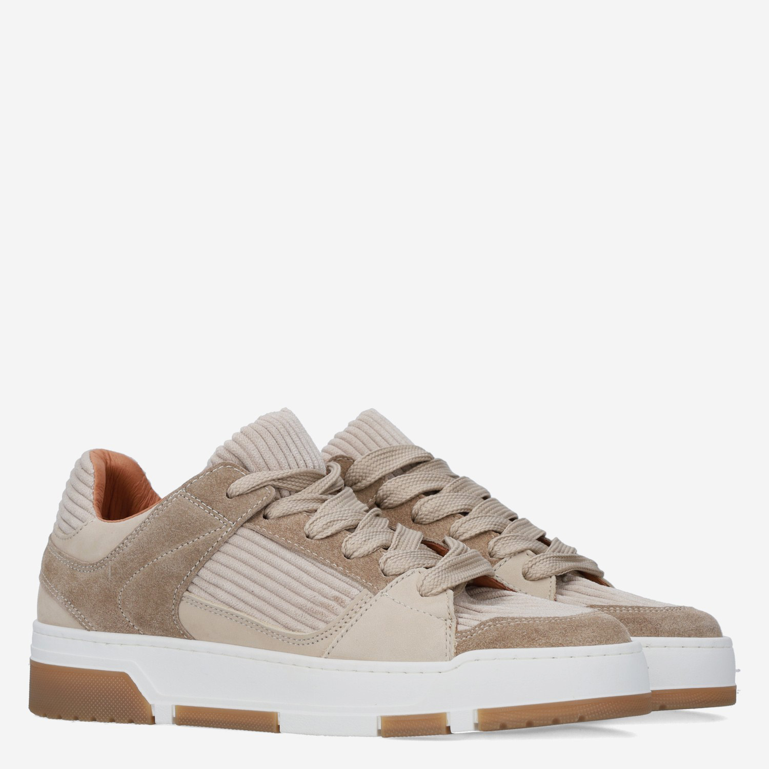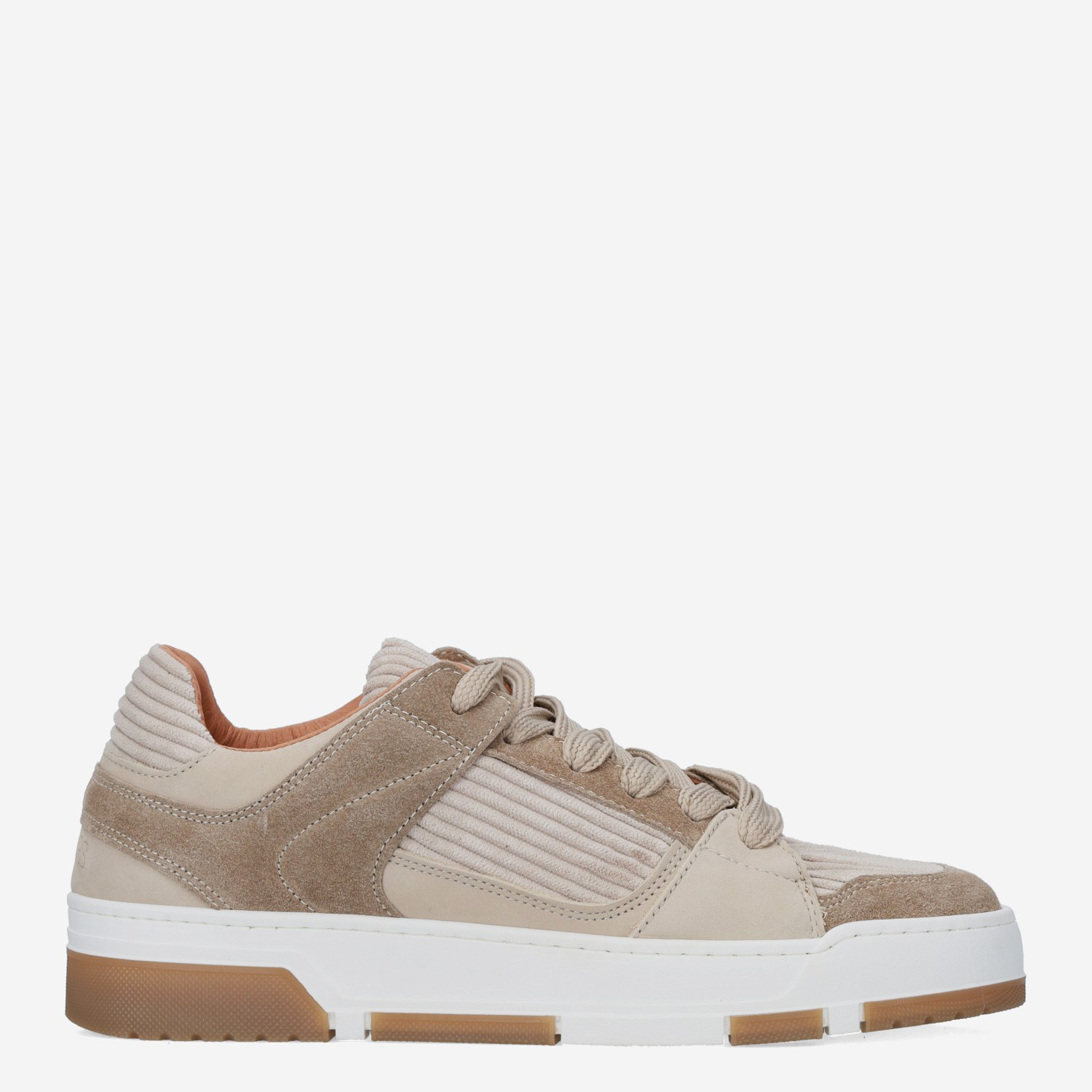 Deze beige, bruine Whitby damessneaker van DWRS is gemaakt van verschillende leersoorten in combinatie met textiel en synthetische materialen. De sneaker is voorzien van corduroy overlays.