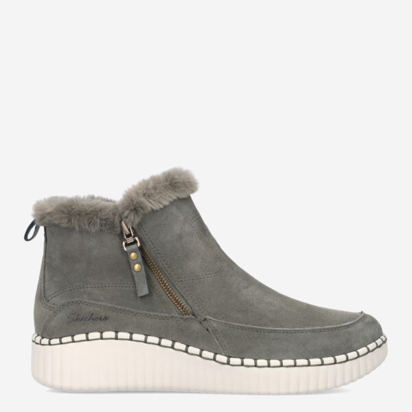 Deze groene Wilshire Zip damesschoen van Skechers is gemaakt van imitatieleer en textiel in combinatie met synthetische materialen. De boot is voorzien van een ritssluiting en heeft een zachte voering.