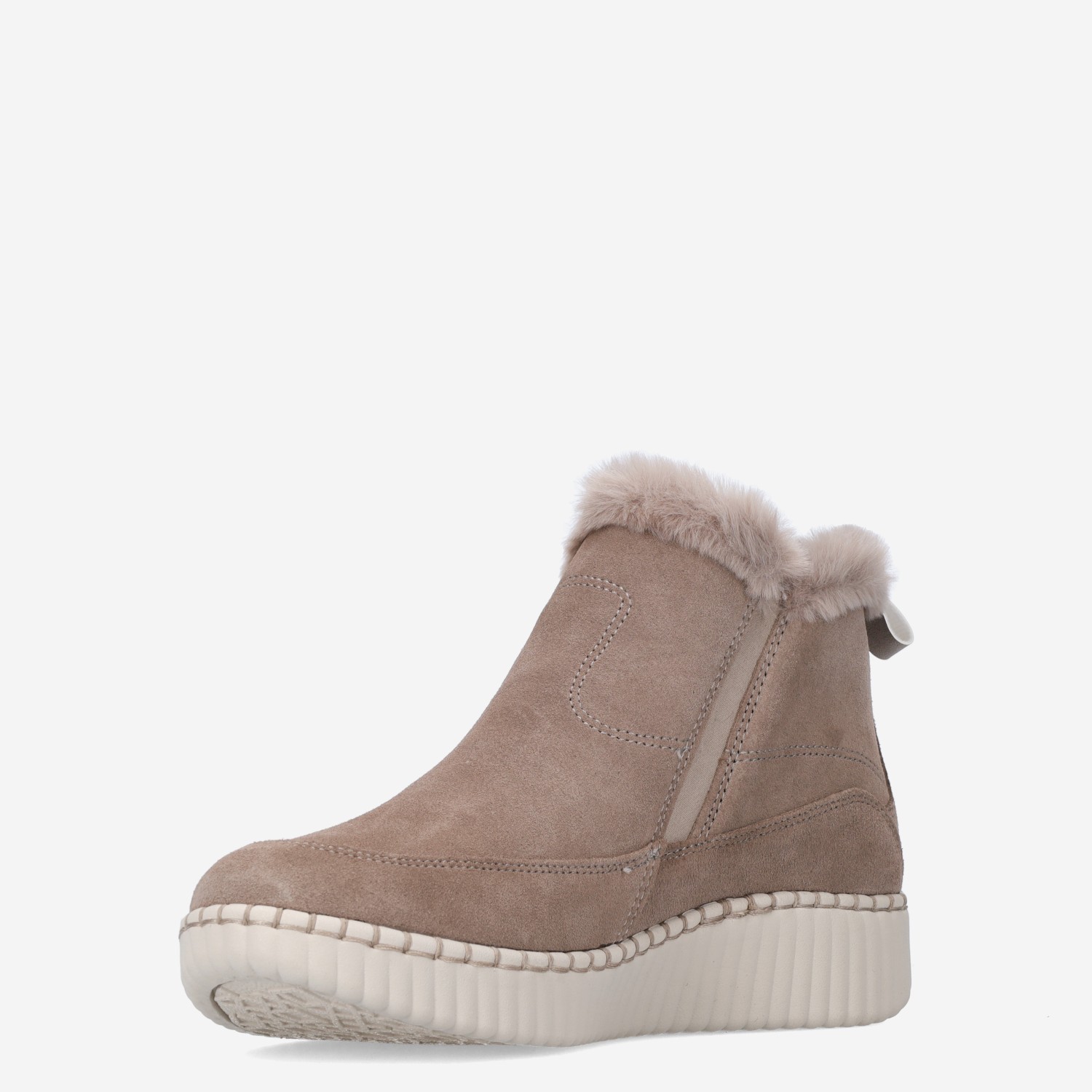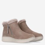 Deze beige Wilshire Zip damesschoen van Skechers is gemaakt van imitatieleer en textiel in combinatie met synthetische materialen. De boot is voorzien van een vetersluiting en heeft een zachte voering.