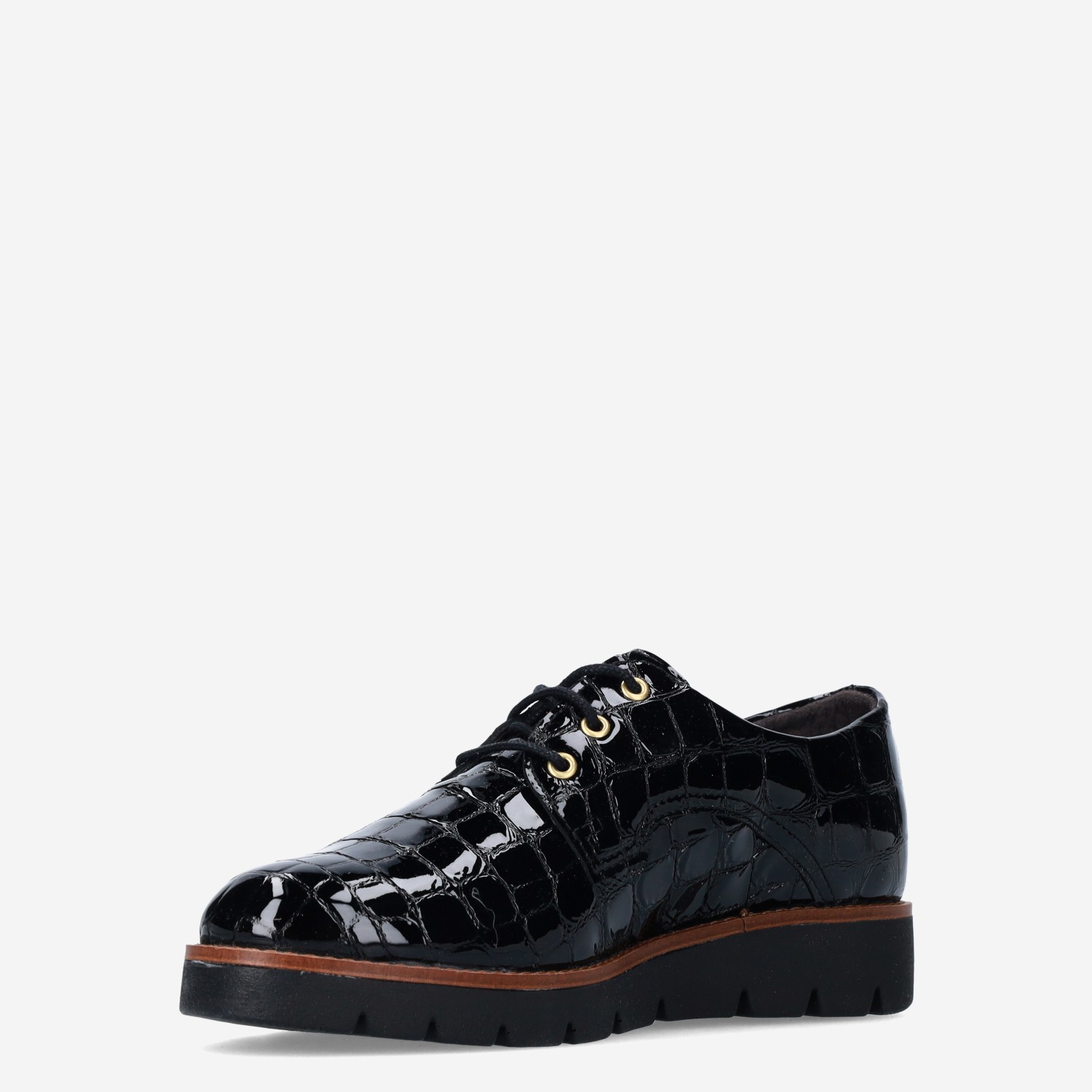 Deze zwarte Aco Zoe damessneaker is gemaakt van lakleer, in combinatie met textiel. Combineer deze sneaker met een lichte pantalon!